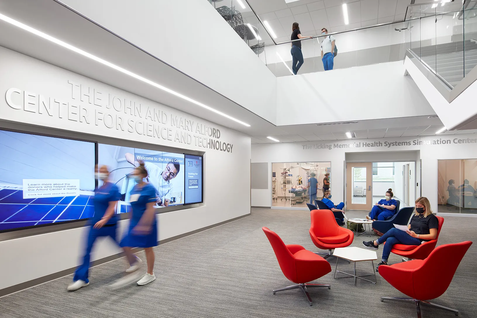 The overall unit is intrinsically changed with the advent of single family room NICU’s. Larger room areas inherently increase travel distances. Therefore, strategies need to be developed to decentralize work areas for nursing staff and the many specialty subconsultants that are involved in the collaborative care of patients in the NICU. Technology has also answered the call with alarm management solutions that eliminate the audio alarms within the unit and notify staff directly when attention is needed. This has extended to adaptations for fire alarm system alternatives that eliminate the need for audio alarms and flashing strobe lights. Many staffing changes studies conclude that nursing ratios can remain similar to those of open units. However, the number of staff needed to support biomedical engineering, environmental services and supply control often increase given the reliance on communications technology, monitors and increase in physical area.